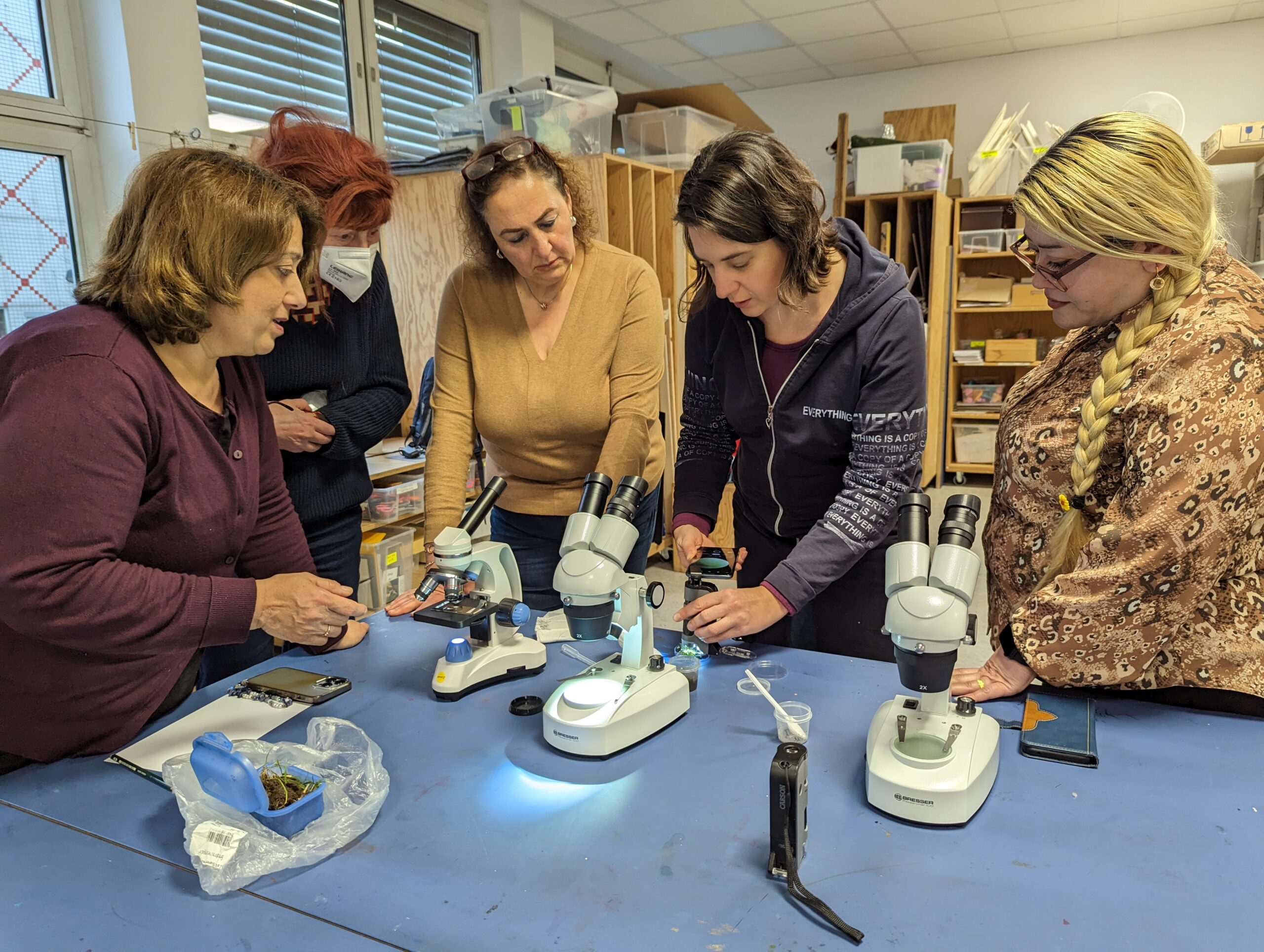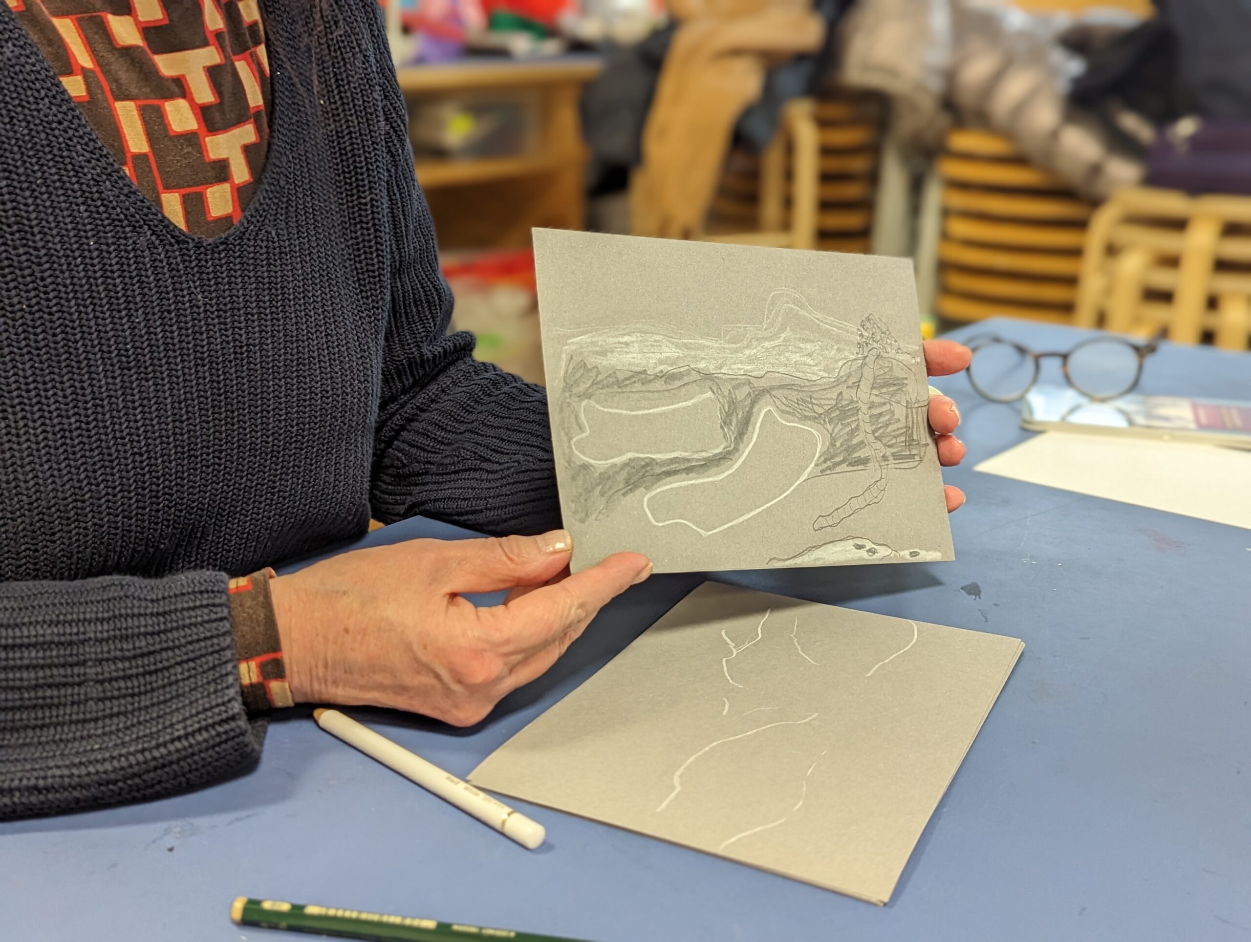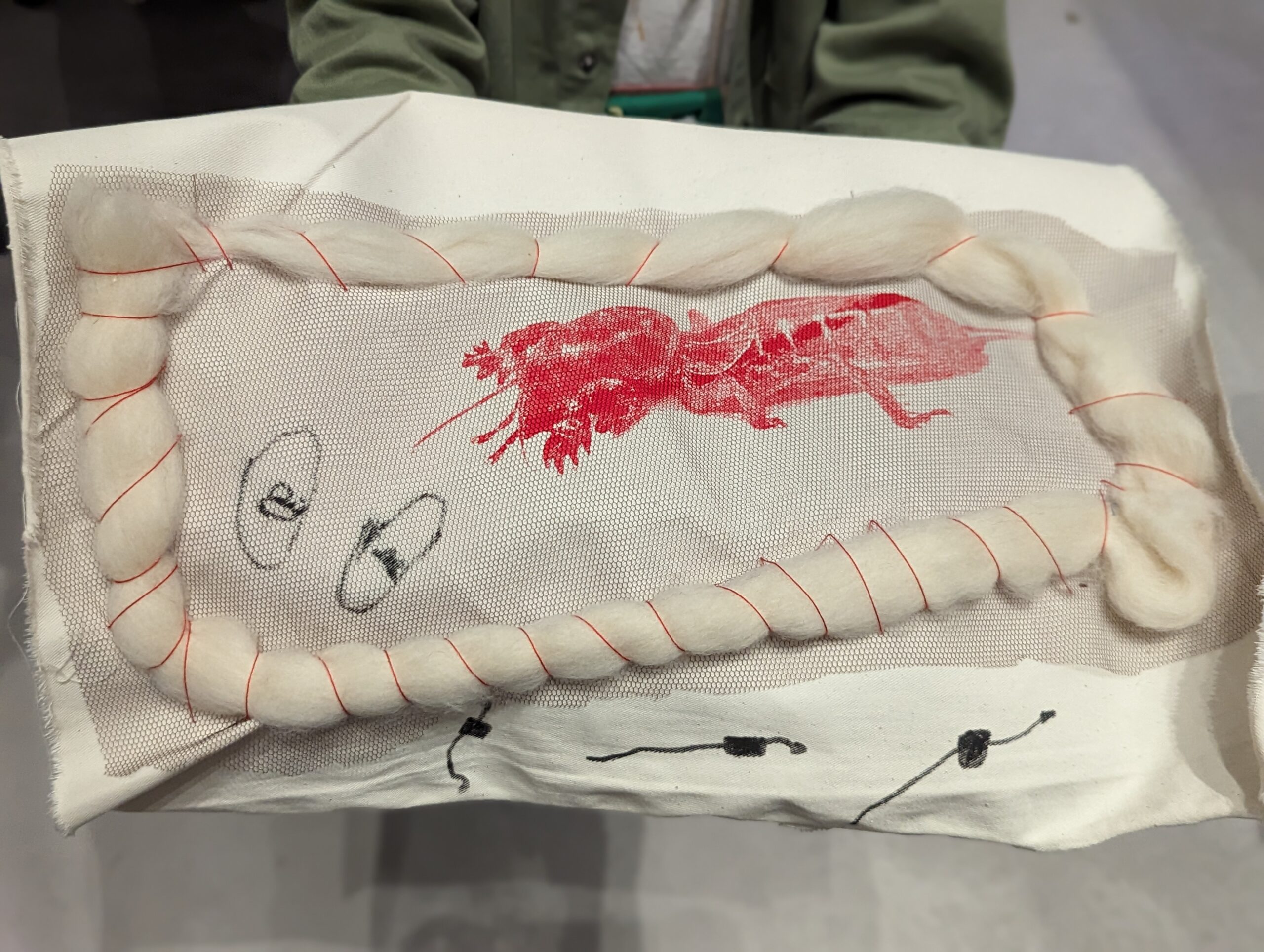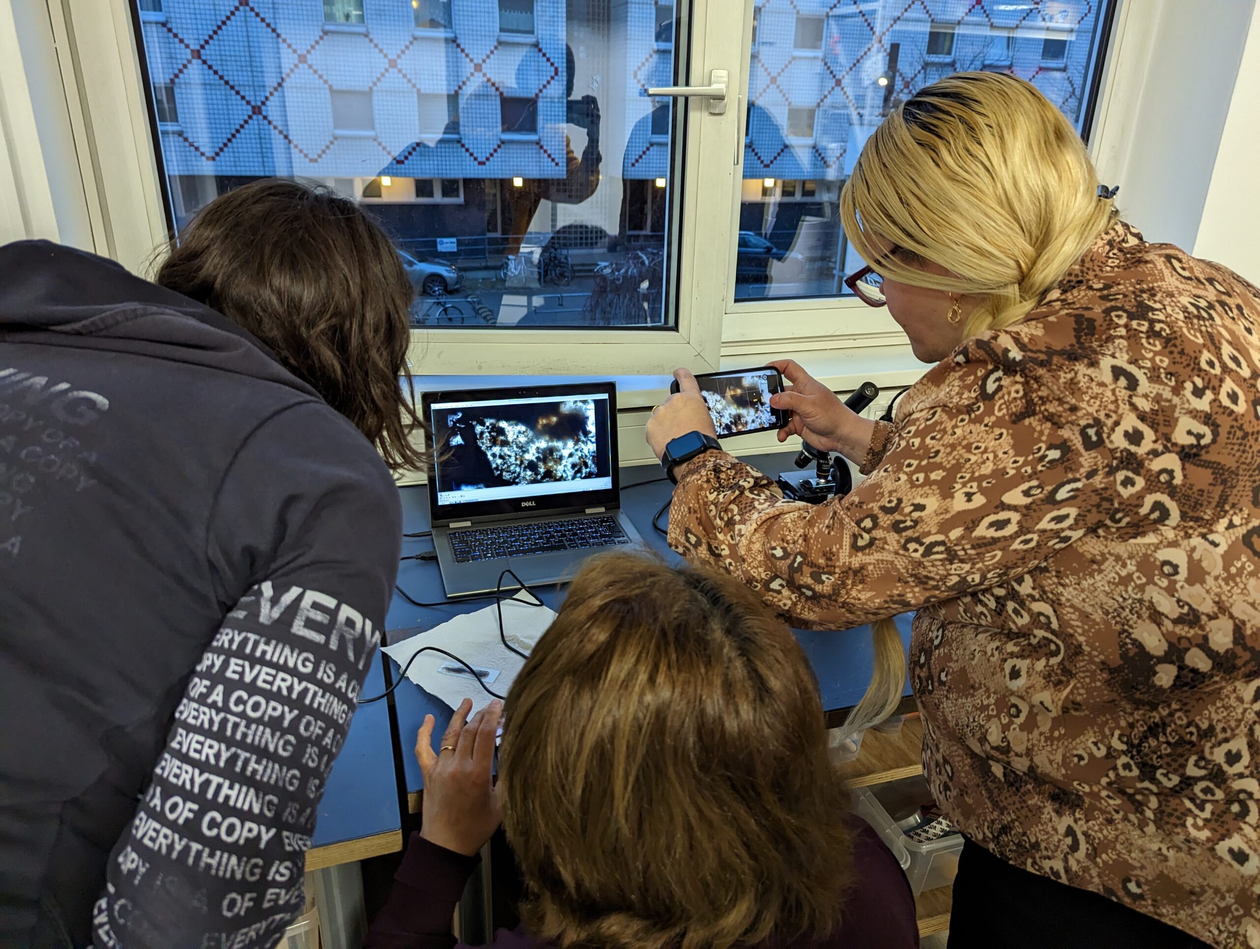 Über einen Zeitraum von sechs Monaten trafen wir uns regelmäßig in den Räumen der Berlinischen Galerie, um der Frage nachzugehen: „Welche Geheimnisse verbirgt die Tiefe?“. In intensiven Experimenten beschäftigten wir uns mit diesem Thema, untersuchten Bodenproben, zeichneten und druckten, um die verborgenen Geheimnisse der Tiefe zu ergründen. Unsere Erkenntnisse hielten wir schließlich auf Stoff fest. Bei der abschließenden Präsentation in der Berlinischen Galerie waren alle Interessierten eingeladen, sich an einer künstlerischen Nähaktion zu beteiligen. Dabei konnten sie den Pfad einer Maulwurfsgrille in die unsichtbare Welt der Tiefe nacherleben und eigene textile Bilder kreieren.
